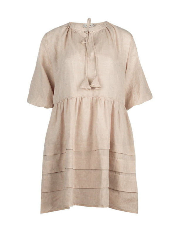 Relaxed elegance meets timeless design in the Cara Linen Dress – your go-to piece for carefree days and coastal escapes. Crafted from airy 100% linen, Cara features soft three-quarter puff sleeves, a tiered skirt, and a tassel-tie neckline for a touch of playful charm.