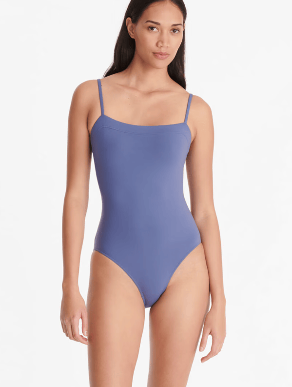 An iconic ERES style loved for its clean lines, this one-piece swimsuit features a straight neckline framed by delicate straps. It shows off all body types.