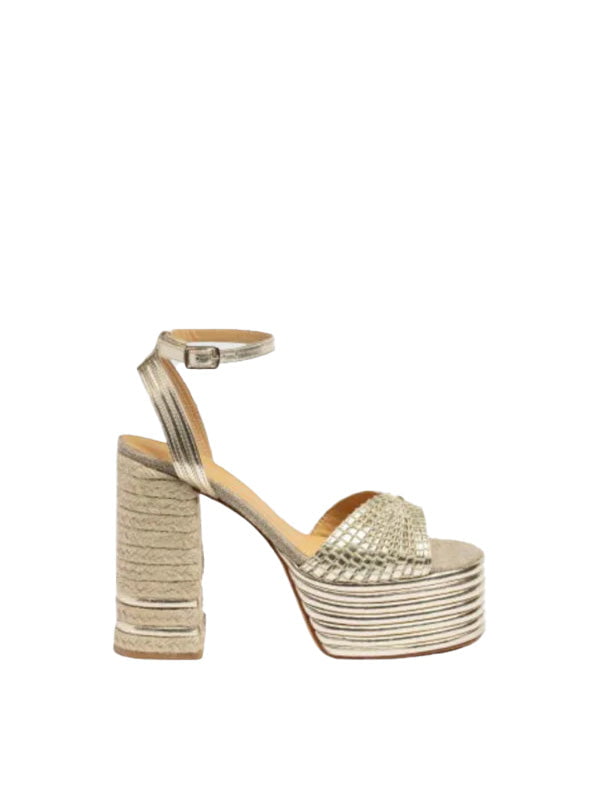 A stunning open toe 12cm platform in metallic gold leather. A buckle tie ankle strap gives you the comfort for extra support.