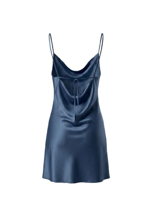 Sleek, feminine, and effortlessly refined, the Sofia Cowl Neck Mini Dress is the ultimate expression of modern elegance. Crafted from luxurious silk, this timeless mini dress drapes beautifully over the body, creating a soft, fluid silhouette with a subtle luminous finish.