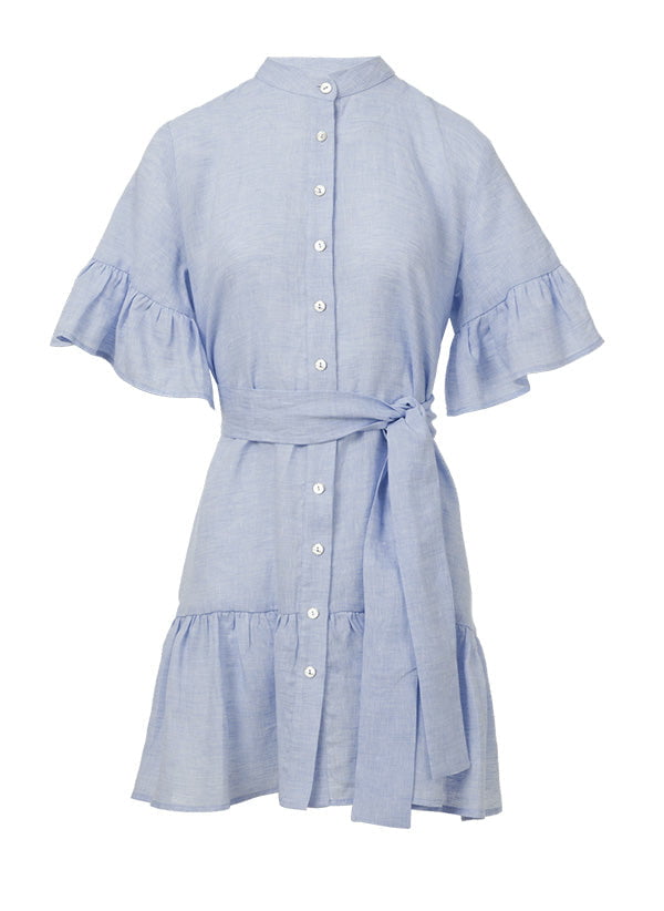 Chara Ruffle Shirtdress Sky