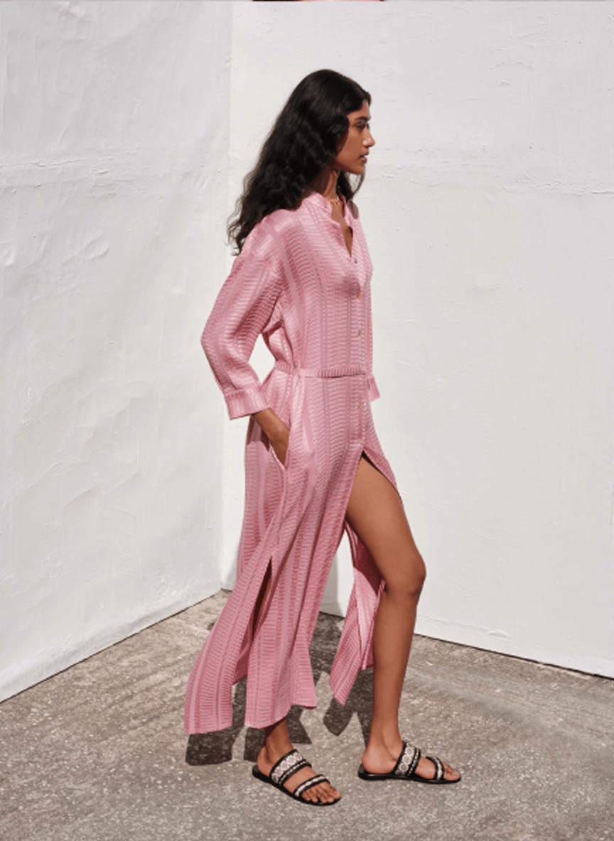 Maira Long Textured Silk Shirtdress Pink