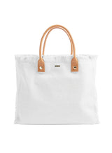 An essential for your next getaway, add to your holiday accessories with the Cap Ferrat Beach Tote. Sleek and neutral in classic White, our iconic beach bag is designed to house all you need for a day on the sand. Featuring three roomy compartments, this style boasts a canvas body with delicate fringed edges. Comfortable leather handles in contrasting tan elevate the design alongside a signature gold-tone branded plaque and protective studs on the base.