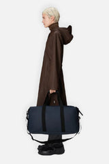 Hilo Weekend Bag is cut from Rains’ signature waterproof PU fabric, engineered for carrying strength, durability, and a smooth feel.