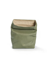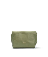 The ‘Kypseli’ pouch is crafted from smooth olive green leather, that's meant to be rolled up to enhance its slightly slouchy shape. Defined by precise topstitching and crowned with a gold-plated Acanthus motif, it offers a refined way to carry your essentials.