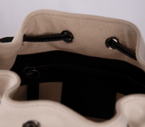 Crafted with the finest leather and premium canvas materials, this mini bucket bag showcases a perfect fusion of modern design and timeless sophistication. It's a mini bucket bag so allows for effortless carrying, making it an ideal companion for both day and evening occasions.