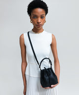 The Micro Bucket Bag is crafted from butter-soft grained leather and our signature macrame handle. Featuring both a handle and a removable strap, this mini bag design can be carried by hand or crossbody.