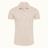 Orlebar Brown's Sebastian linen polo shirt in Pebble is the ultimate holiday style. Breathable, absorbent, resilient, and flattering — what more could you want in a holiday polo shirt? This short-sleeved style boasts our signature two-piece collar and deep button placket.