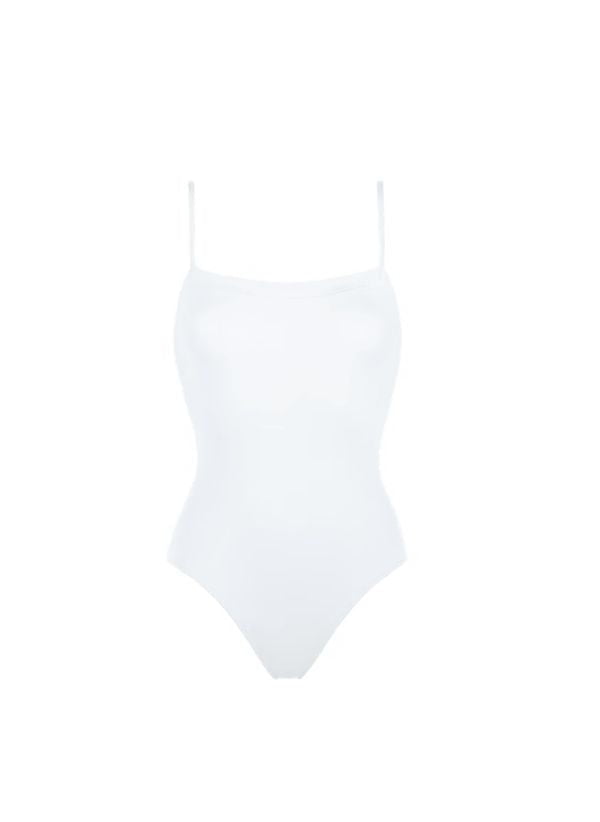 An iconic ERES style loved for its clean lines, this one-piece swimsuit features a straight neckline framed by delicate straps. It shows off all body types.