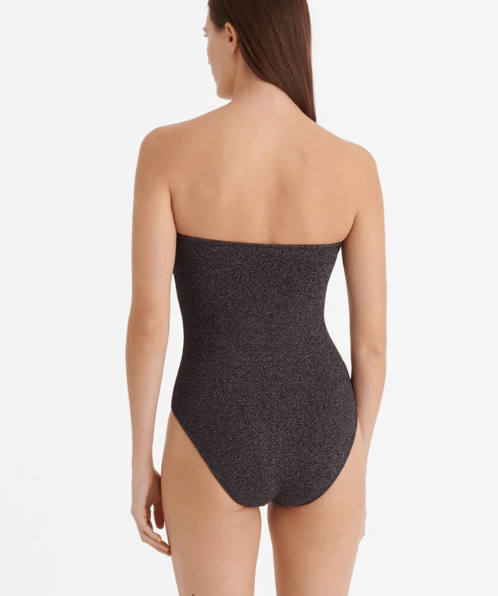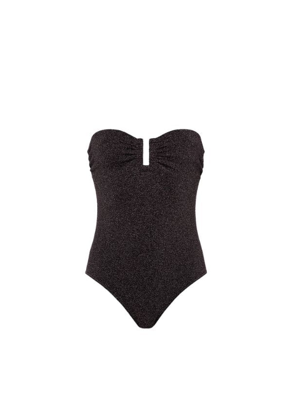 Borrowing the silhouette of the iconic Cassiopée style, this shimmering bustier one-piece is universally flattering and features gathered cups, separated by the distinctive U-shaped link.