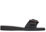 Rendered in high-shine leather and adorned with an oversized wing buckle, these sandals are the sleek fashion-forward option for day-to-night city adventures. One simple strap across the foot secures the shoe, making them an easy addition to any warm-weather look.