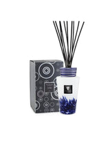 The hand-made cobalt blue ceramic cap adorns the Totem Feathers Touareg bottle with an imaginary turban similar to those worn by the “blue men” of the desert.