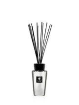 The Platinum home fragrance diffuser is a bottle delicately covered with metallic paint reminiscent of the precious metal whose name it bears. Finished with a black bakelite cap engraved with a root motif, this perfume diffuser is a truly beautiful object.