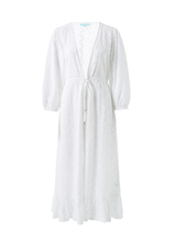 The ultimate summer cover-up, add to your destination wardrobe with the Avery Kaftan. Perfect for slipping on over your favorite Odabash swimwear, this piece features intricate embroidery throughout. Falling to a relaxed midi length, its classic ‘White’ shade beautifully complements glowing holiday skin. Puffed sleeves and a ruffled tire create a romantic silhouette. Boasting a plunging ‘V’ neckline, wear it open or belted at the waist for a glamorous beach look.