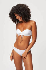 The bandeau bikini has been created to enhance and lift through invisible underwiring and secret side boning. Styled with decorative ruching which flatters the neckline as well as adjustable ties with signature Heidi Klein gold hardware. Paired with the hipster bikini bottoms feature an elegant and streamlined design, offering medium coverage.