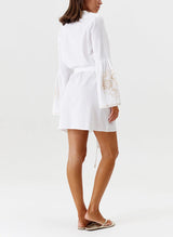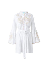 Crafted from a luxe cotton linen blend, elevate your destination looks with the Every Kaftan. Part of our Cruise 2024 collection, this dazzling White piece features intricate Tan embroidery depicting floral motifs. Falling to mid-thigh, it boasts dramatic bell sleeves, a round collar, an open plaquet and is finished with a silhouette defining belt.