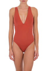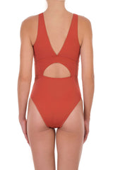 The Leona swimsuit has broad, flattering straps and a cutout back. It has a minimal design, that’s free from wiring and padding. We like how the seams under the bust add structure and support. Wear yours with black denim shorts and tan sandals.