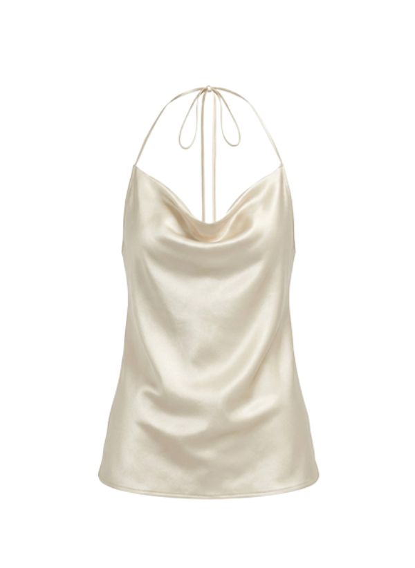 The flattering cowl neckline creates natural movement and a feminine silhouette, while the lightweight silk fabric skims the body with ease. Designed with delicate straps and a clean, minimal shape, the Ersi Top embodies understated sophistication and modern versatility.