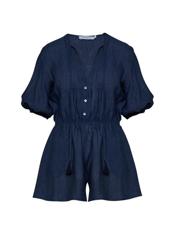 Effortless elegance meets warm-weather comfort with the Persephone Linen Playsuit – your go-to for chic coastal living. Crafted from 100% breathable linen, this lightweight romper features a flattering cinched waist, relaxed puff sleeves, and a plunging neckline for that perfectly undone look.