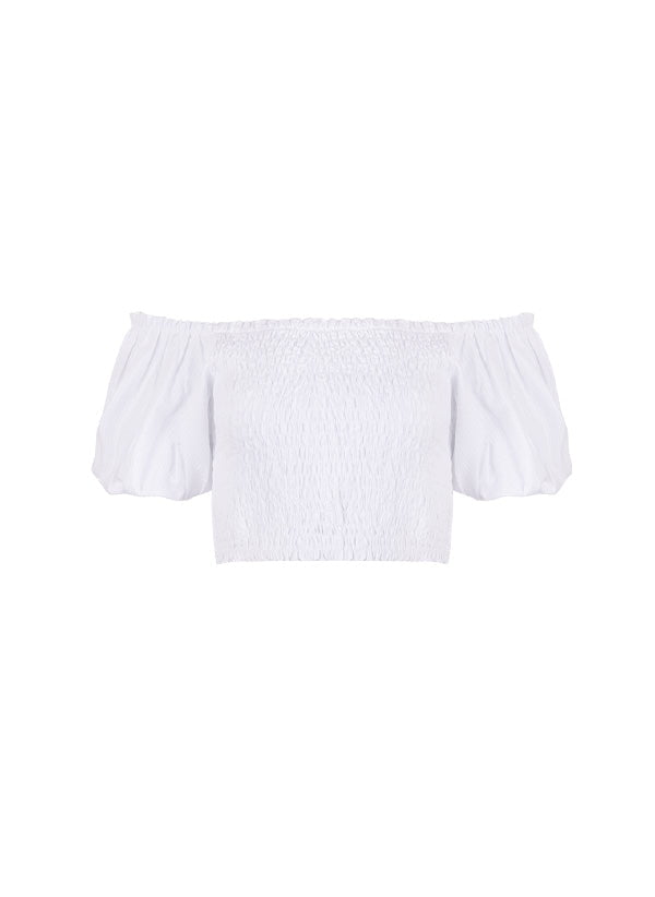 Flirty, feminine, and fun – the Annie Puff Sleeve Top is your new summer staple. Made from 100% soft cotton, this off-the-shoulder crop top features a smocked bodice for a flexible, flattering fit, and statement puff sleeves that add a romantic touch.