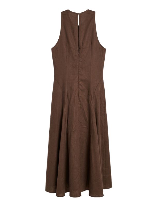 Evelina Godet Linen Dress Espresso