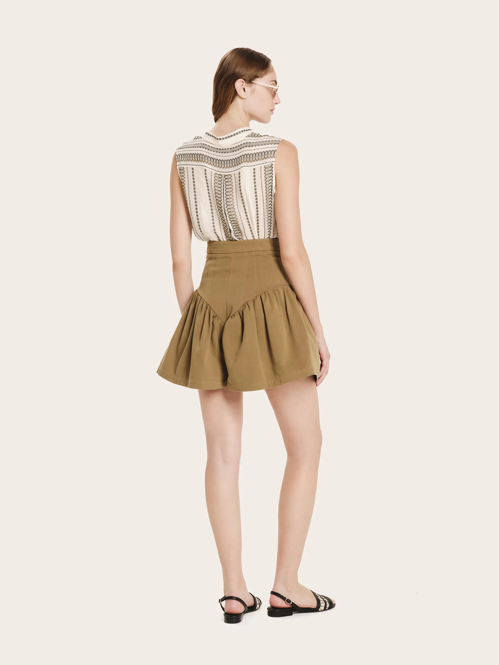 Hera Sleeveless Textured Silk Top Mao Neck Khaki/Ivory