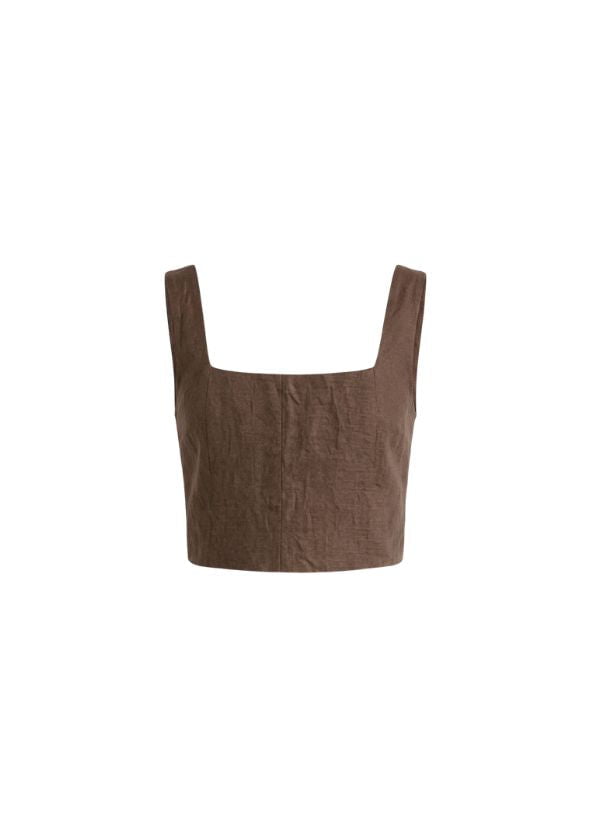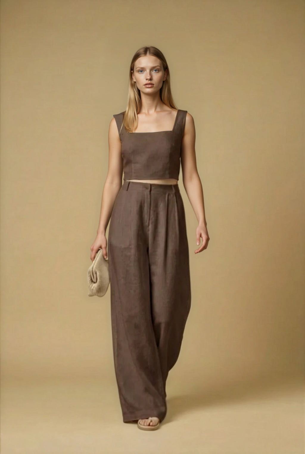 Designed with a square neckline and wide shoulder straps, the Ira Crop Top provides a flattering, supportive fit while maintaining a crisp silhouette. Its structured shape pairs beautifully with matching linen skirts or trousers, creating an effortlessly coordinated look.
