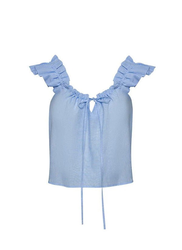 Koko Ruffle Linen Top Sky
