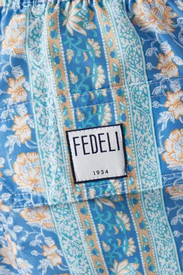 alternate, creating a three-dimensional texture and a lightweight effect. The elastic waistband with drawstring ensures a perfect fit, while the contrast stitching and embroidered branding logo on the back pocket add a touch of refined elegance. Elevated with Summer-y patterns.