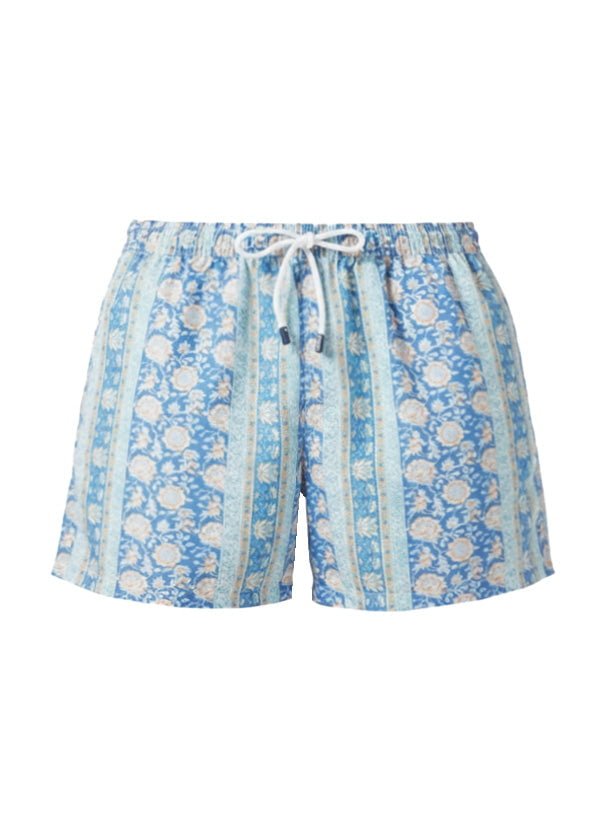 Embrace the Italian summer in unparalleled style with our iconic Madeira swim trunks, now coming in “Sakar” seersucker textile. A unique technical fabric made with a specialized weaving technique where tight and loose yarns