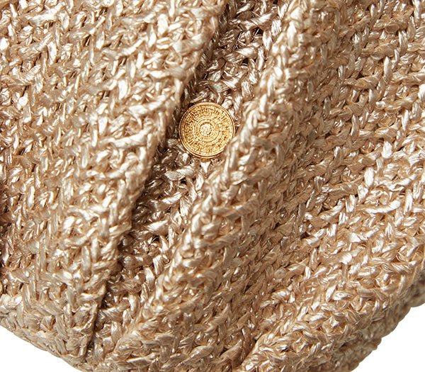 A chic raffia shoulder pouch that celebrates Greek island style in a modern, wearable design.