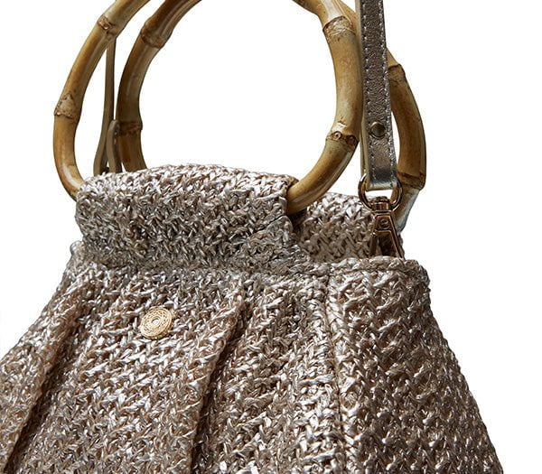 A stylish raffia mini tote that blends bamboo craftsmanship with modern Mediterranean charm.