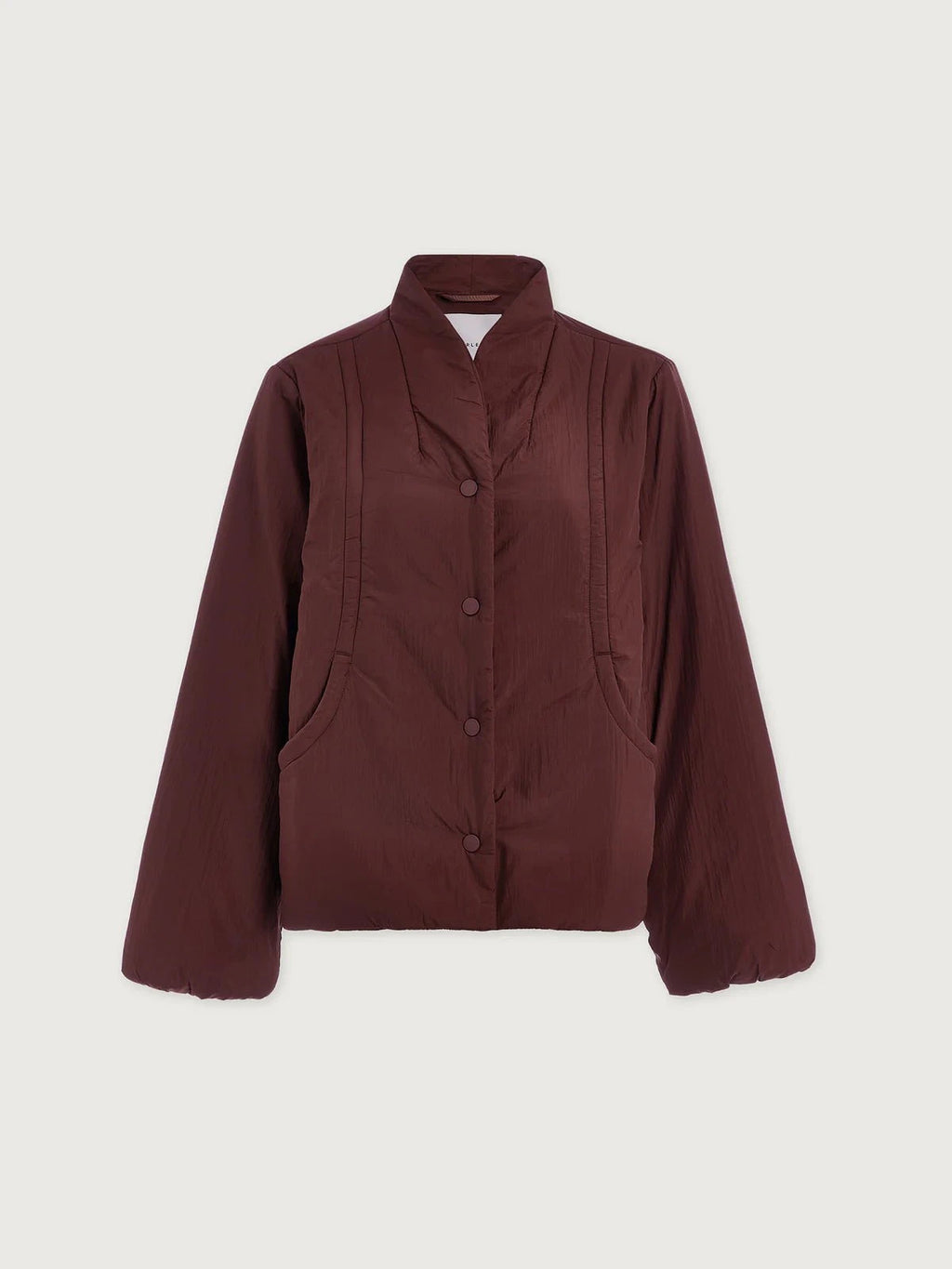 Crafted from superlight soft nylon, this jacket offers a lightweight feel while providing optimal warmth with its synthetic fill. The wrap-over snap fastenings add a contemporary touch, ensuring easy, everyday wear.